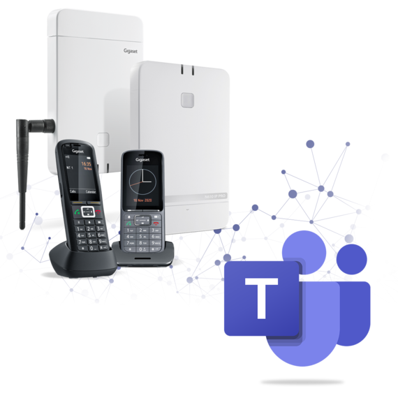 R700H PRO, Microsoft Teams üzerinden arama yapmak ve gelen aramaları almak için kullanılabilir. Aramaları birleştirmek veya sessize almak da mümkündür. Sesli mesajlar dinlenebilir ve bildirimler sizi yeni sesli mesajlar konusunda uyarır. Teams toplantılarına katılmak, toplantı erişim numarasını doğrudan el cihazından girerek mümkündür. Bu işlevler için ön koşullar; Microsoft Teams SIP Gateway sahibi olmak ve R700H PRO’nun yeni Gigaset tek veya çok hücreli sistemlerinden birine (N610 IP PRO, N670 IP PRO, N870 IP PRO, N870E IP PRO) bağlı olmasıdır.